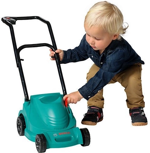 Boots echt tuinwerk na met de kindergrasmaaier van KLEIN onder de BOSCH-licentie. Licht en duurzaam plastic met vier grote wielen, een realistische gesimuleerde schakelaar en mechanisch maai-geluid tijdens het rijden. Perfect voor buitenspelen, stimuleert motoriek en zonder batterijen.