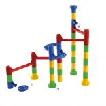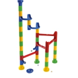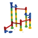 Kleurrijke knikkerbaan biedt plezier en educatie voor kinderen, die kunnen volgen hoe de knikkers over de verschillend samengestelde banen bewegen. Het bevat veel obstakels en biedt creatieve mogelijkheden voor montage.