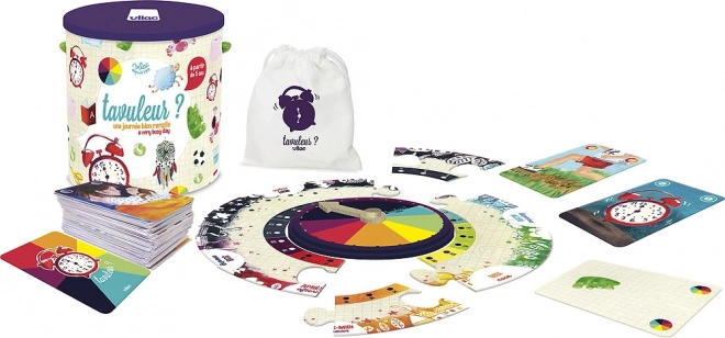 Vilac biedt kinderen een uitdaging om hun dag zo goed mogelijk in te vullen. Dit spel leert niet alleen kloklezen op een klassieke wijzerplaat, maar ontwikkelt ook op passende wijze andere cognitieve vaardigheden. Tijdens het spelen leren kinderen vormen en kleuren herkennen en zich te concentreren bij het samenstellen van de schijfvormige wijzerplaat.