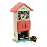 Vilac Insectenhotel rood is ontworpen om onderdak te bieden aan bijen, lieveheersbeestjes en andere nuttige insecten, wat helpt de biodiversiteit in je tuin te ondersteunen. De opbouw omvat buisvormige openingen en ruimte voor materialen zoals dennenappels, waardoor een ideale leefomgeving voor insecten ontstaat.