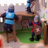 De set bevat 4 houten figuurtjes – twee blauwe en twee rode ridders met schilden en helmen. Ideaal om eigen verhalen en veldslagen te creëren.