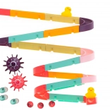 Elke dag kun je een nieuwe racebaan maken waar kinderen niet alleen leren creëren, maar ook kunnen racen in vrolijke wedstrijden met kleurrijke bonen en balletjes. De slide is uitgerust met zuignappen voor gemakkelijke bevestiging op tegels of het bad, wat stabiliteit tijdens het spel verzekert.