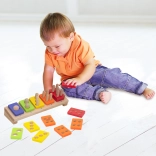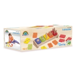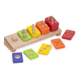 De robuuste afwerking van massief hout en het gladde oppervlak garanderen veilig spel. Dankzij de heldere kleuren motiveert het speelgoed tot herhaald spelen en ontwikkelt het effectief de fijne motoriek, concentratie en geduld.