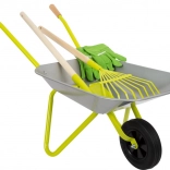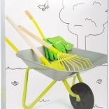 Ideale set voor kleine tuiniers! Deze kinder kruiwagen heeft een capaciteit van ongeveer 10 liter en is uitgerust met katoenen handschoenen, een schep en een hark, waardoor kinderen gemakkelijk kunnen helpen in de tuin.