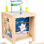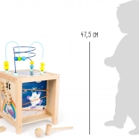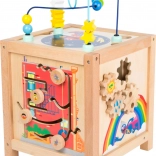 Houten motorische activiteitenkubus voor kinderen