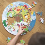 De ronde vloerlegpuzzel voor kinderen van Bigjigs Toys biedt een unieke manier voor kinderen om kennis te maken met seizoensgebonden veranderingen. Elk puzzelstuk is zorgvuldig ontworpen om een volledig 360-graden scène te creëren, die verschillende activiteiten en landschappen weergeeft die typisch zijn voor de lente, zomer, herfst en winter.