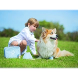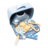 Met de complete dierenartskoffer kunnen kinderen knuffels en dierenfiguren verzorgen als een echte dokter. De set bevat instrumenten zoals een stethoscoop, thermometer, otoscoop, injectiespuit, verband, borstel, beschermkraag en andere accessoires. Alles is opgeborgen in een stevige textielen tas met pootafdruk, ideaal om mee te nemen en op te bergen.