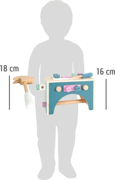 Praktische houten gereedschapskist 2-in-1 biedt kinderen eindeloze speelmogelijkheden dankzij de veelzijdigheid. Door de kist om te draaien kan deze ook als werkblad worden gebruikt en al het gereedschap kan eenvoudig worden opgeborgen dankzij de openingen aan de zijkanten.