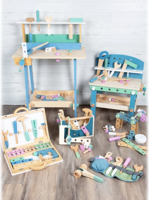 Deze houten gereedschapskist is ideaal voor kinderen die echte reparaties en ambachtelijk werk willen nabootsen. Het eenvoudige Scandinavische design in zachte pasteltinten past perfect in elke kinderkamer: