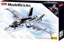 Deze realistische F/A‑18 Super Bumblebee-straaljager uit de SLUBAN ModelBricks-lijn biedt een gedetailleerd toestel met verfijnde cockpit, bewapening onder de vleugels en een begeleidende motorfiets met minifiguur. Dankzij de robuuste constructie van hoogwaardige ABS-kunststof is het model perfect om mee te spelen en om neer te zetten.