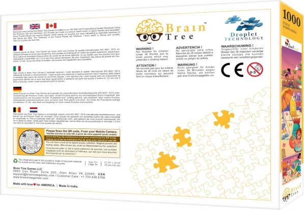 Je zult de uitgebreide accessoires in de doos waarderen: een poster van 52 × 30 cm voor makkelijker oriënteren, vouwbare kartonnen sorteervakken om te sorteren, een praktische standaard voor het deksel van de doos en bij sets met 1000 stukjes ook een groot hersluitbaar zakje dat de stukjes beschermt tegen beschadiging en verlies. Het eindformaat van het beeld is 70 × 50 cm.