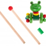 Een schattige houten kikker op wielen, die kan worden voortgeduwd met een afneembare stang, is het ideale speelgoed voor kinderen die net leren lopen. Dit speelgoed motiveert niet alleen om te wandelen, maar ontwikkelt ook hun coördinatie en balans.