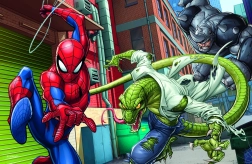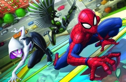 Levende en dynamische illustraties van Spider-Man en zijn vrienden brengen energie en opwinding in het spel.