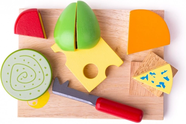 Hout is het belangrijkste materiaal van deze zorgvuldig vervaardigde kaasset. Kinderen kunnen de rol van chef-kok uitproberen met gekleurde houten kaasstukken die eruitzien als echte kazen. De set bevat niet alleen kazen, maar ook een mes en crackers, die dienen om het serveren van kazen perfect na te bootsen. De houten stukken nodigen uit tot creatief spel en helpen ook bij de ontwikkeling van de fijne motoriek van kinderen.