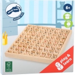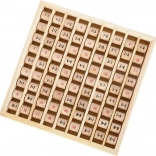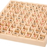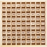 Deze houten tafeltjes-plaat met draaibare rolletjes stimuleert logisch denken, concentratie en zelfvertrouwen in rekenen. Kinderen kunnen de rolletjes draaien, sommen veranderen en meteen het juiste antwoord controleren – ideaal voor zelfstandig oefenen of samen leren met ouders.