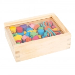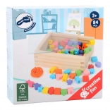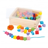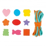 Kleine creatievelingen kunnen uren plezier hebben met deze houten set. De doos bevat 81 kleurrijke kralen en 2 koorden, waarmee kinderen allerlei sieraden kunnen creëren die aansluiten bij hun eigen voorkeuren.
