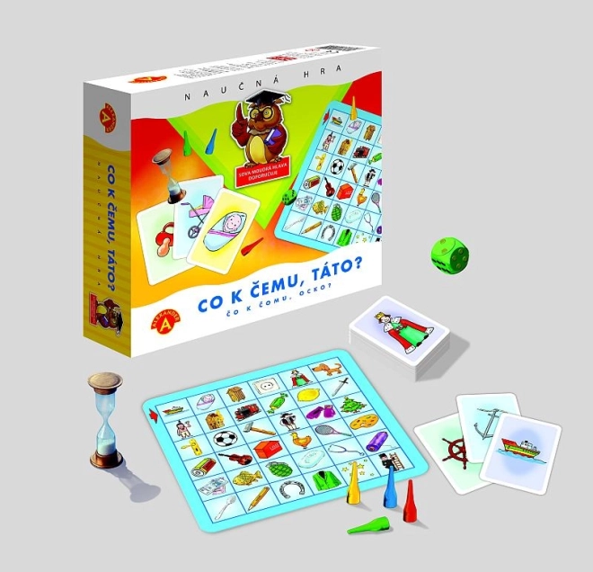 Het spel 'Waarvoor is dit?' biedt drie moeilijkheidsniveaus die zich aanpassen aan de leeftijd en ervaring van de spelers. De taak is om verbanden te vinden tussen afbeeldingen op het speelbord en de kaarten, wat de logische en cognitieve vaardigheden van kinderen versterkt.