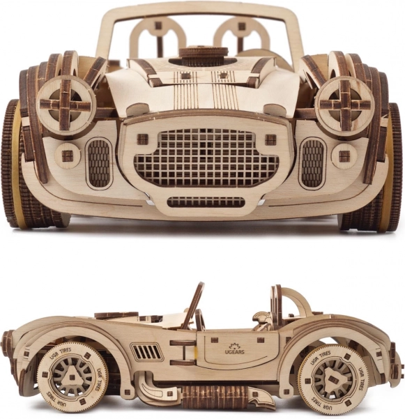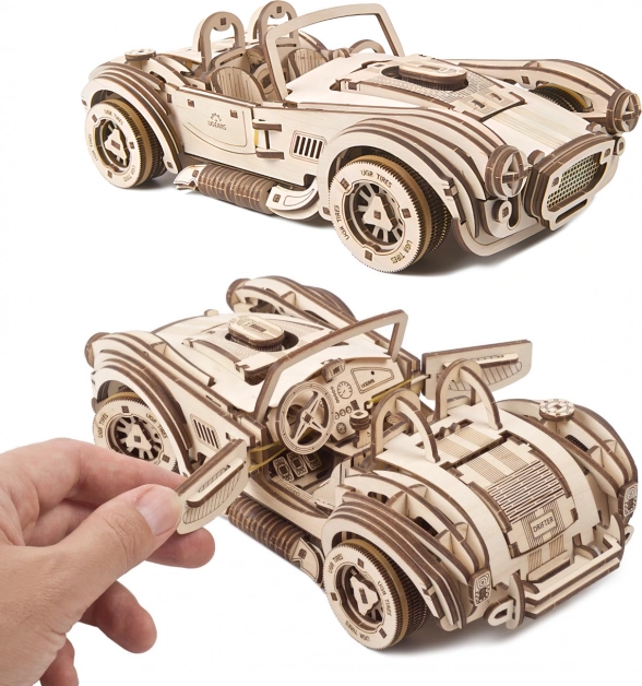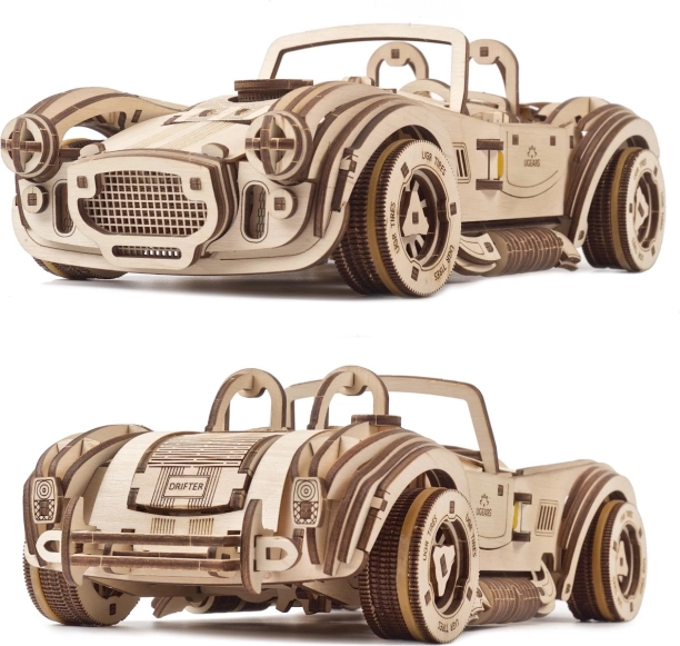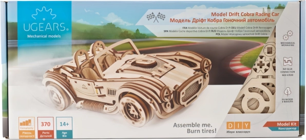 Bouw een iconische sportwagen en beleef de sensatie van het rijden met het model UGEARS Drift Cobra. Dit nauwkeurig ontworpen houten model met veeraandrijving legt meer dan 8 meter af, heeft te openen deuren, motorkap en kofferbak en schakelt soepel tussen stationair en achteruit. Dankzij de mogelijkheid om de wielen te voorzien van rubberen bandjes kies je eenvoudig tussen driften en maximale grip. Een geweldige uitdaging voor bouwers vanaf 14 jaar en een uitzonderlijk cadeau voor liefhebbers van mechanica en snelle auto’s.