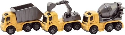 Leuke plastic bouwvoertuigjes met vliegwiel maken elke kleine bouwer blij. In de verpakking vind je 3 verschillende soorten voertuigen van circa 10 cm, die na het opdraaien snel wegschieten. Ideaal als origineel cadeau voor kinderen vanaf 3 jaar.