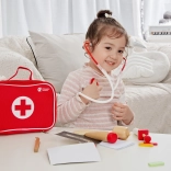 De set van Classic World bevat alles wat een kleine dokter nodig heeft voor het spelen van dokter. Kinderen kunnen de hartslag van patiënten (knuffelberen, poppen) beluisteren met de stethoscoop, de temperatuur 'meten' met de thermometer, 'injecties geven' of essentiële medicijnen toedienen. Doktertje spelen is niet alleen een geliefd rollenspel, maar ook een middel voor het leren van empathie en betrokkenheid, wat erg belangrijk is voor sociale relaties. Deze set bevordert de ontwikkeling van fantasie en probleemoplossend leren.
