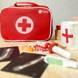 • - Inclusief: stethoscoop, verband met rood kruis, thermometer, injectiespuit met bewegende zuiger, schroevendopkruikje, medicijnendoosje, papierblokje, röntgenfoto's, medische tas.