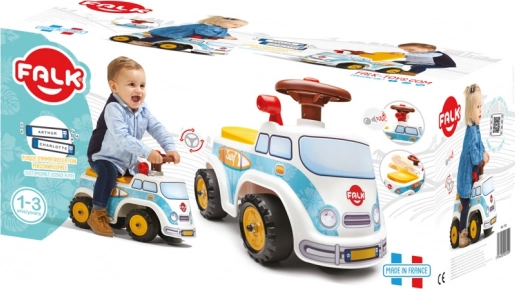 De loopauto in de stijl van een surfauto is ideaal voor kleine avonturiers die van beweging houden. Dit kleurrijke en functionele model van het merk FALK is ontworpen voor veilig en leuk rijden.