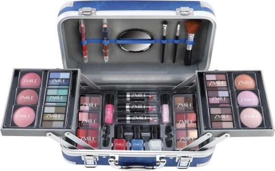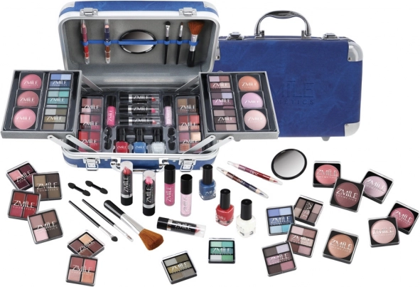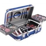 Cosmetische koffer met aluminium hoeken van Travel Blue met geïntegreerde spiegel – in totaal 84 stuks accessoires.