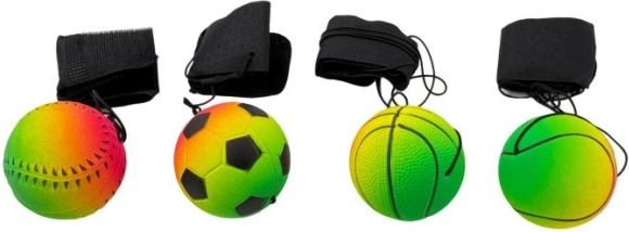 Een leuk balletje aan een elastiek voor actieve kinderen dat de coördinatie, reactievermogen en motoriek ontwikkelt. Verkrijgbaar in 4 soorten, ideaal voor spelen thuis en buiten en voor veilig trainen van gooien en vangen.