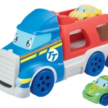 De auto’s zijn gemakkelijk vast te pakken en ontworpen in heldere, speelse kleuren. De transporter biedt plaats aan tot 4 auto’s en heeft een vrolijk uiterlijk dat elk kind zal bevallen.