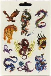 Geniet van creatieve fun met tijdelijke tatoeages in een handig boekje. Dankzij de ruime keuze aan motieven – van draken en dieren via bloemen tot muzieksymbolen – is er voor iedereen wat wils. De tatoeages zijn in een halve minuut aangebracht en net zo makkelijk weer verwijderd, zodat je motieven naar wens kunt afwisselen, passend bij je stemming en de gelegenheid.