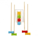 Buitenplezier voor het hele gezin! Gekleurde houten croquet is het ideale spel voor kinderen vanaf 6 jaar. Wie breekt het record met het minste aantal slagen?