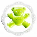 Kleurrijke babyrammelaar met bijtring in de vorm van een ring en met een beer- of konijnmotief helpt het tandvlees te verzachten tijdens het doorkomen van tandjes en ontwikkelt tegelijk de fijne motoriek en het visuele waarnemen. Het compacte en lichte ontwerp is ideaal voor kleine kinderhandjes.