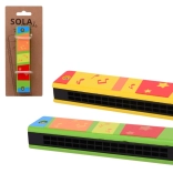 Ontdek de magie van muziek met deze prachtige houten mondharmonica. Ontworpen voor kleine kinderen met decoratieve elementen in de vorm van muzieknoten en sterren, is het perfect om ritme en melodieën te leren. De mondharmonica is ongeveer 2,5 x 13 cm groot, wat het ideaal maakt voor kleine handjes.
