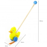 Houten duw-eend aan een stok is een eenvoudig maar effectief speelgoed waar elk kind dol op zal zijn. Het is een klassiek speelgoed dat veel voordelen biedt. Het schattige gele eendje beweegt energiek met zijn pootjes tijdens het lopen, wat kinderen motiveert om te wandelen. Het speelgoed is verpakt in een esthetische doos met een venster waardoor je het eendje kunt zien. Binnenin zit een stok met een handgreep die perfect in een kinderhand past. De stok is niet permanent bevestigd, wat het opbergen vergemakkelijkt. Het hele speelgoed is gemaakt van beukenhout en geverfd met niet-giftige verven in levendige kleuren die de aandacht trekken en uitnodigen tot spelen, wat veel speelplezier brengt.