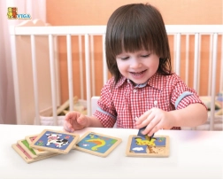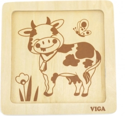 De houten koeienpuzzel van Viga biedt jonge kinderen een geweldige manier om vormen te leren herkennen en de fijne motoriek te ontwikkelen. De set bevat 4 puzzelstukjes en een afbeelding die het kind helpt bij het leggen. De puzzel is zorgvuldig vervaardigd uit veilige houten materialen en beschilderd met levendige, niet-giftige verven. Elk spelmoment met deze puzzel zit vol plezier en ontwikkeling voor je kind.