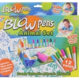 Met deze grote set blaasstiften maken kinderen gemakkelijk originele afbeeldingen met safari-dieren. Dankzij het opzetstuk met pompje is geen sterke adem nodig – de kleur wordt als een zachte straal aangebracht en creëert mooie overgangen en schaduwen. De praktische standaard met houder houdt de stiften overzichtelijk bij elkaar.