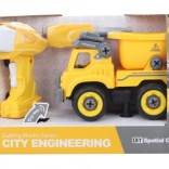 Deze kiepwagen uit de serie stedelijke techniek ontwikkelt spelenderwijs de vaardigheden van kinderen: eerst zetten ze de wagen in elkaar met de meegeleverde schroevendraaier of boor, daarna plaatsen ze de motor uit de boor in de auto en gaan ze aan het werk. Eenvoudige bediening vooruit/achteruit, geluidseffecten en een stevige constructie prikkelen de verbeelding en de hand-oogcoördinatie.