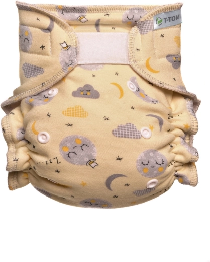 Het T-TOMI luierbroekje in een modern design is gemaakt van materialen van de hoogste kwaliteit. Het is bedoeld voor zo eenvoudig mogelijk verschonen van baby’s van ca. 3 tot 15 kg. Deze luiers zijn geschikt voor zowel pasgeborenen als peuters, dankzij het eenvoudige drukknoopjessysteem waarmee de gewenste maat gemakkelijk wordt ingesteld op S, M, L. De binnenzijde van het luierbroekje is gemaakt van zachte bamboe-frotté, aangenaam voor de babyhuid. Onderdeel van de set is een lange inlegger van BIO bamboe.