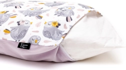 De luxe donzen kussentje van ESECO biedt je kindje maximaal comfort tijdens het slapen. Onze kussentjes zijn gemaakt van tijk en een katoenen overtrek. De tijk is van 100% katoen en gevuld met een speciale combinatie van 100% gesorteerd en dons van ganzendons, waardoor het kussentje hemels luchtig, zacht en licht is. De afneembare kussenhoes is gemaakt van 100% designkatoen en zacht velvet, heeft een ritssluiting en kan daardoor op elk moment worden verwijderd en naar wens gewassen of verwisseld. Het moderne en tijdloze design maakt van het kussentje een stijlvolle toevoeging aan elke kinderkamer. Bij het kussentje raden wij aan een extra kussensloop te kopen voor eenvoudig wisselen. Bij elk kussentje is ook een hoogwaardige deken in hetzelfde patroon verkrijgbaar. Het donzen kussentje moet dagelijks gelucht en opgeschud worden.