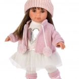 Elke kleine dame zal genieten van de stijlvolle winteroutfit met een roze gebreide hoed, jasje en tutu-rok. De kleding combineert textiel- en plastic materialen, ontworpen voor speelse gelegenheden.