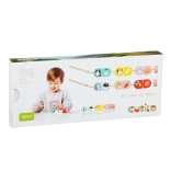 Ontdek een leuk, educatief spel dat vaardigheden ontwikkelt bij kinderen vanaf drie jaar. De rijgset Cubika Wat eten we bevat kleurrijke houten stukjes met dieren en hun favoriete lekkernijen. De taak is om de juiste paren te vinden en ze aan het koord te rijgen – ideaal om fijne motoriek, geduld en logisch denken te trainen.