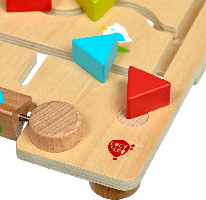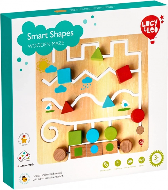 Het slimme houten doolhof met geometrische vormen van LUCY & LEO stimuleert logisch denken, fijne motoriek en visuele waarneming. Kinderen schuiven gekleurde vormen over de banen en leggen volgens voorbeeldkaarten of met behulp van draaiblokken de juiste combinaties. De stevige houten constructie, levendige kleuren en het compacte formaat maken het tot een ideale reisvriendelijke speelgoedset.