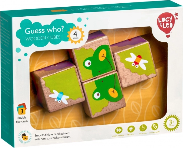 Een set van vier houten blokjes van LUCY & LEO met vrolijke dieren en hun favoriete snacks stimuleert de fantasie van kinderen, fijne motoriek en logisch denken. Van de blokjes kun je tot wel 6 verschillende afbeeldingen leggen aan de hand van voorbeeldkaarten. Het speelgoed is gemaakt van hoogwaardig hout met een veilige afwerking en is ideaal voor jonge kinderen vanaf 3 jaar. Leren door te spelen, kleuren oefenen, oog-handcoördinatie en puzzelen met plezier in één.