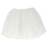 Het lichte witte rokje met glinsterende sterren geeft elke stap een vleugje magie. Ideaal om te dansen, voor carnaval en voor fotoshoots.