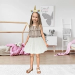 De elastische taille van het rokje past zich gemakkelijk aan het lichaam van het kind aan; het materiaal is licht en geschikt voor langdurig dragen.