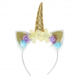 Comfortabele haarband met glanzende hoorn, sprankelende oortjes en kleurrijke bloemen die het eenhoornkostuum prachtig completeren.