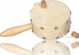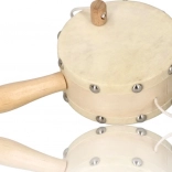 We presenteren een natuurlijke trommel met kralen, ideaal voor jonge muzikanten vanaf drie jaar. Dankzij het houten handvat en het leren trommelvel is deze trommel niet alleen esthetisch, maar ook functioneel.