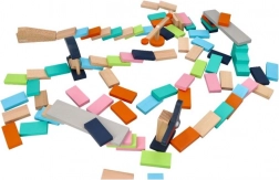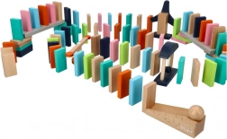 Ontdek het leuke en educatieve kleurrijke houten domino met 128 onderdelen, dat kinderen stimuleert om creatieve banen en kettingreacties te bouwen. De set met draaimolen, windmolentje, poort met knikker, trapjes en bruggen ontwikkelt de fijne motoriek, het logisch denken en het ruimtelijk inzicht. Geschikt vanaf 3 jaar, ideaal voor familie- en groepsspel.