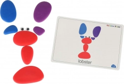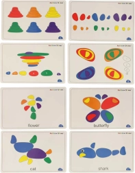 Steentjes in verschillende maten maken het mogelijk om dieren, voorwerpen en fantasiebeelden te leggen. Kaarten dienen als inspiratie en als sjablonen voor zelfstandig creëren.