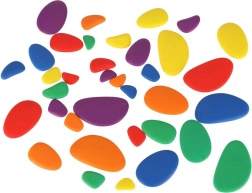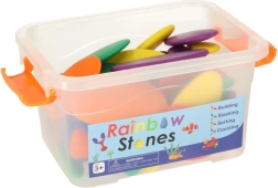 Deze educatieve set is ideaal voor kleuters en jongere schoolkinderen. Gladde kunststof steentjes in levendige kleuren nodigen uit tot vrij spel en geleide activiteiten: kinderen kunnen tellen, maten vergelijken, op kleur sorteren en afbeeldingen en patronen maken volgens kaarten of hun eigen fantasie. Een praktische doos maakt het eenvoudig om alle onderdelen bij elkaar op te bergen.